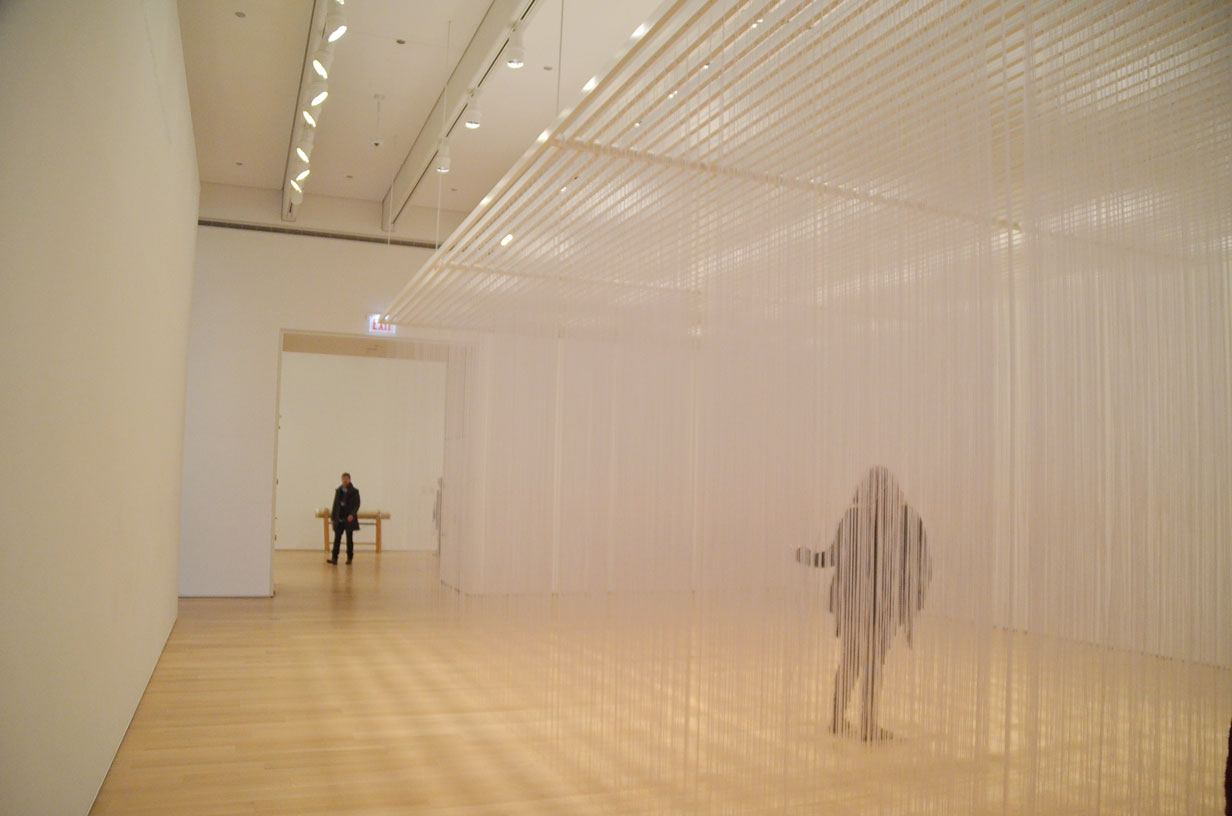 Or this piece by Jesus Rafael Soto, Penetrable de Chicago, I saw and experience at the Art Institute Chicago, where the installation is hanging transparent filaments. People are encouraged to go through to feel the changes of every movement.